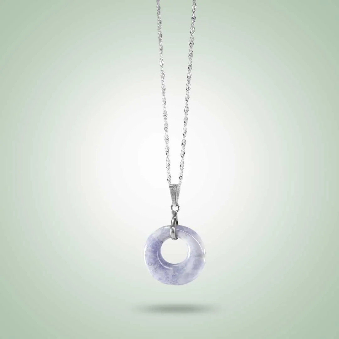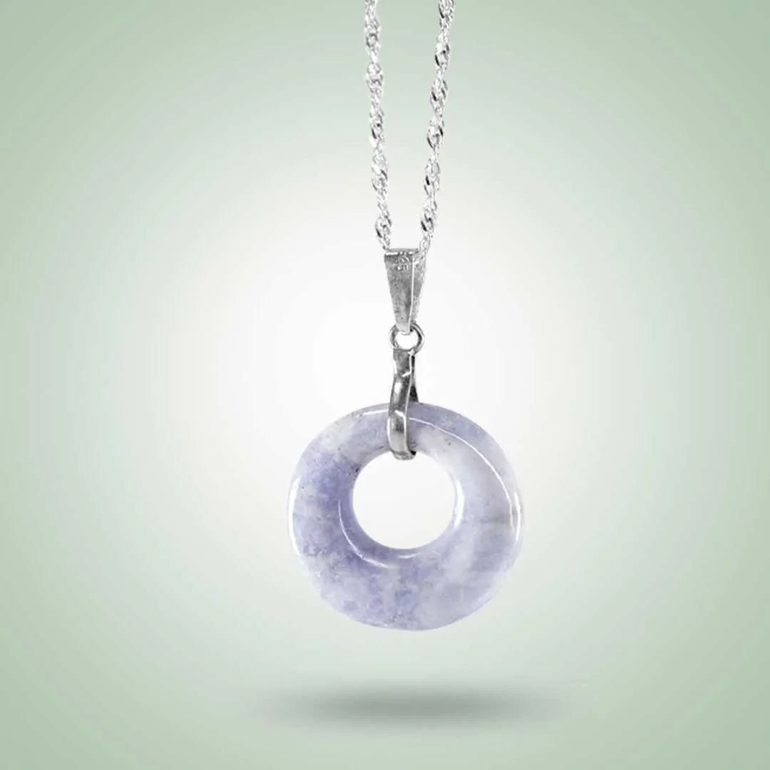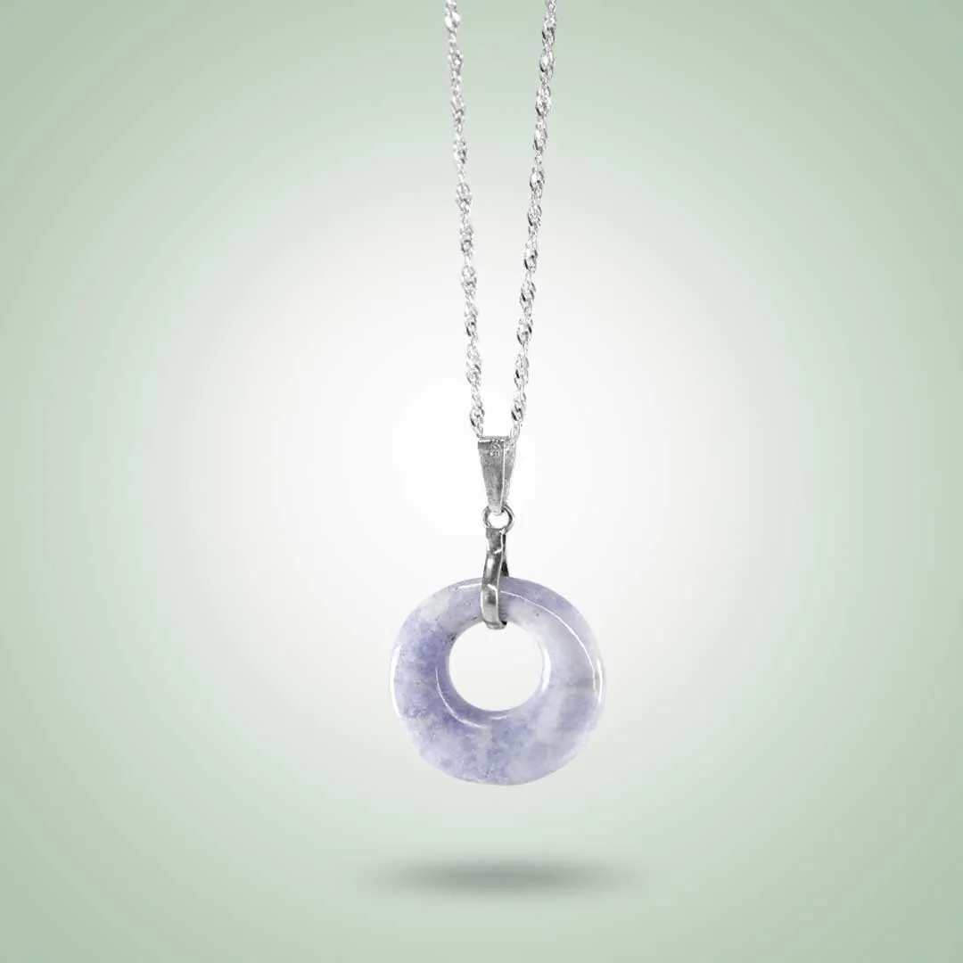 Rare and special Lavender Jade, carved into a simple and sleek circle, making it an elegant and sophisticated piece.